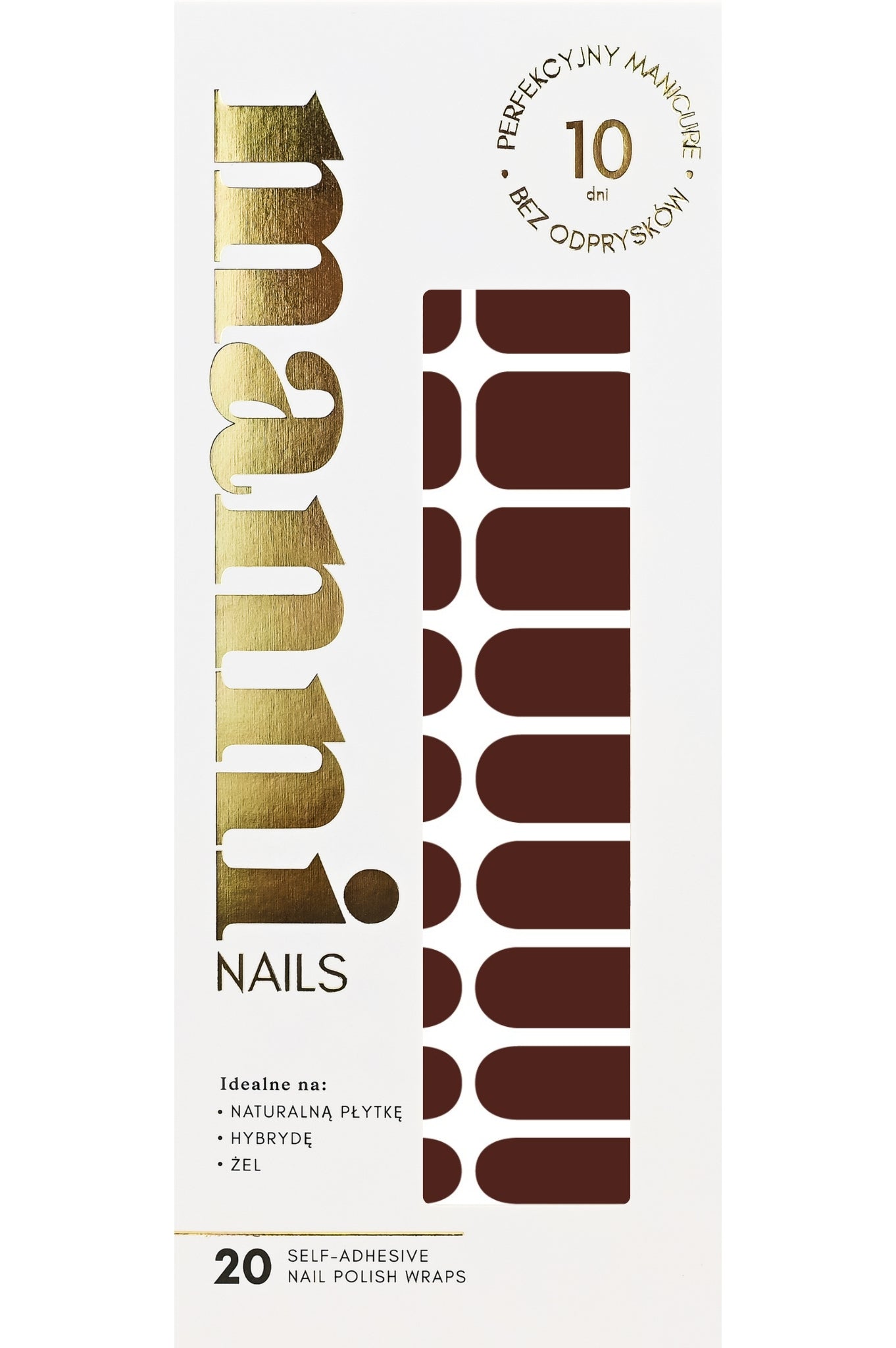 - 20 samoprzylepnych pasków lakieru do paznokci w 8 różnych rozmiarach.