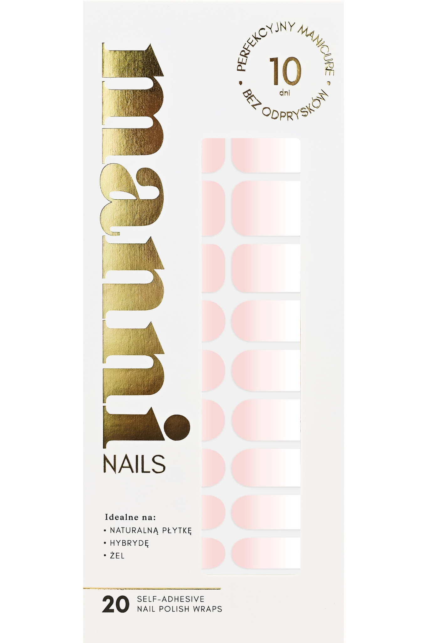 - 20 samoprzylepnych pasków lakieru do paznokci w 8 różnych rozmiarach.